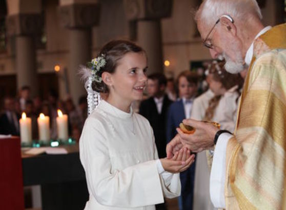 Die Mädchen und Jungs werden mit der Erstkommunion darauf vorbereitet, in der Gemeinschaft der Gläubigen Eucharistie zu feiern. Die Kinder werden bei uns im Religionsunterricht in der 3. Klasse und in der Pfarrei-Katechese zum Sakrament der Eucharistie hingeführt und auf die Erstkommunion vorbereitet.