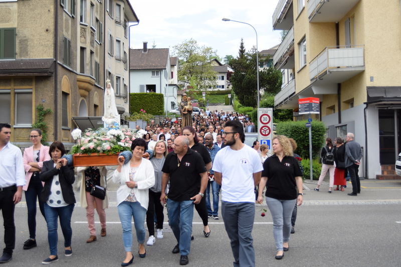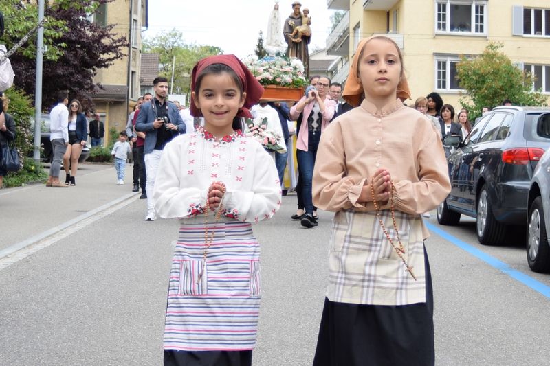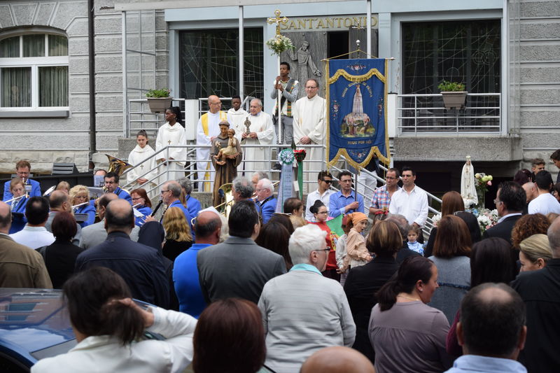 Zum 10. Male trugen Frauen die Fatima-Madonna von der Dreifaltigkeitskirche zur Kapelle Sant’Antonio. Eine grosse Schar Gläubige begleitete sie zusammen mit der Antonius-Statue und der Musikgesellschaft St. Gallen Ost. Vor der Kapelle erbat die Gruppe von ihrem Schutzpatron, Sant’Antonio, den Segen. Danach tanzten sie und eine weitere portugiesische Folkloregruppe auf der Kolumbanstrasse zur Freude der Anwohner.
