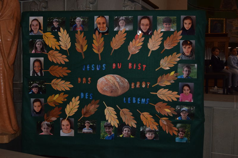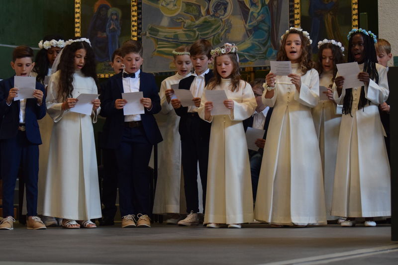 Am 3. Juni feierten 24 Kinder ihre Erstkommunion im Heiligkreuz. Die Eltern haben für ihr Kind ein Kreuz modelliert, das an diesem Tag gesegnet und den Kindern übergeben wurde. Die Kirche war mit 600 Personen bis fast auf den letzten Platz gefüllt.