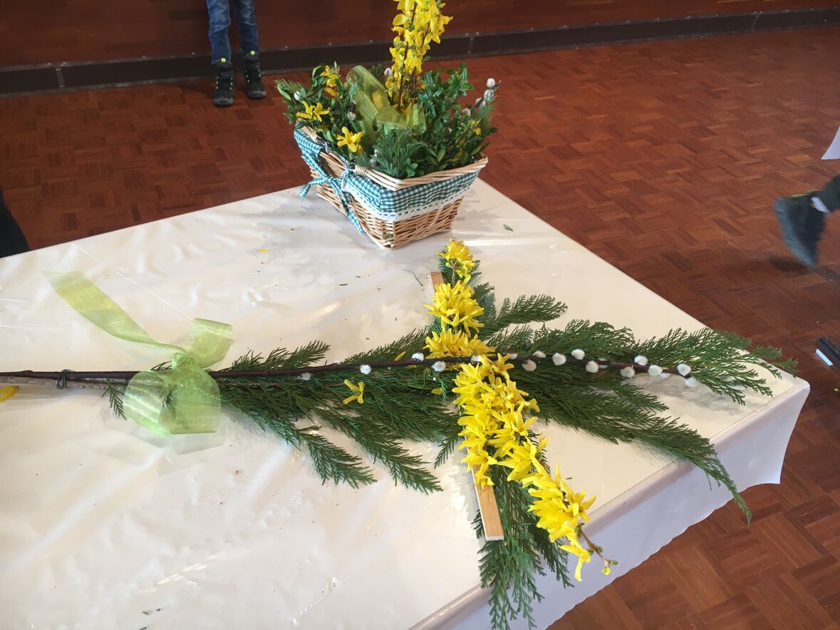 Heiligkreuz: Palmbinden im Pfarreiheim « zurück
