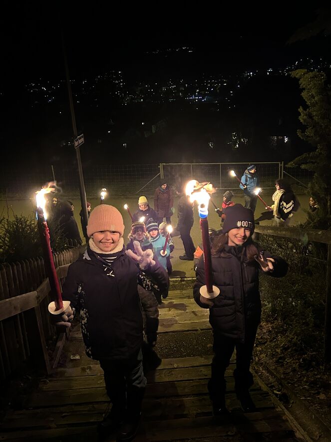 Mit einem Fakelumzug machten gross und klein sich auf den Weg zum Wald bei Peter und Paul. Bei trockenem Wetter und fröhlicher Simmung feierten alle im Schein des Feuers und mit besinnlichen Liedern Waldweihnachten.