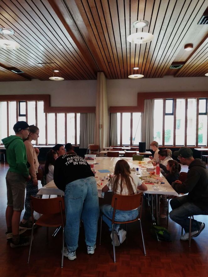 Eifrig haben Kinder und Erwachsene Ostereier bemalt und Ostertaschen gestaltet. Beim knüpfen der Schnüre für die hampelden Hasen und bunten Hühner war Fingerspitzengefühl gefordert. Am Schluss des Nachmittags haben viele lachende Kinder und Jugendliche ihre Ostergeschenke nach Hause gebracht.