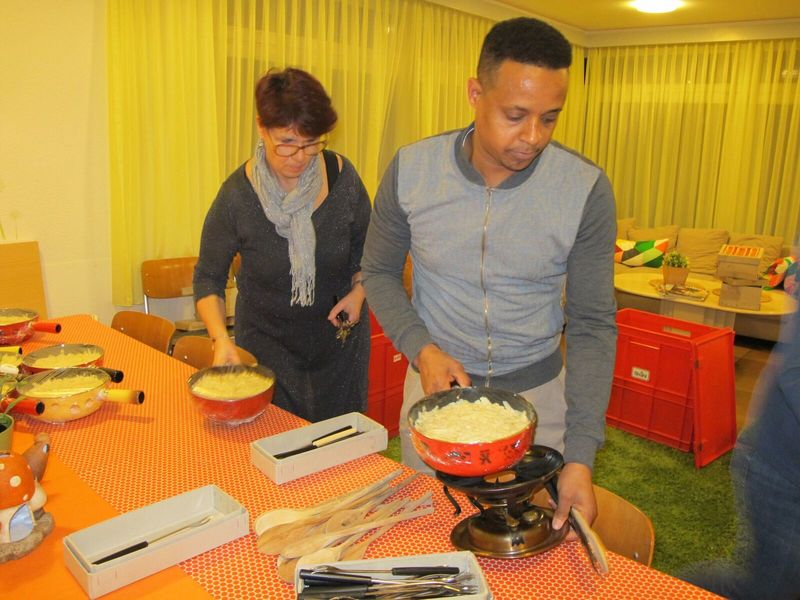 Neujahrsbegrüssung mit Fondue. Für die Zubereitung waren die Eingeladenen selber besorgt.