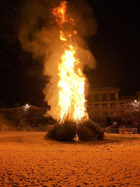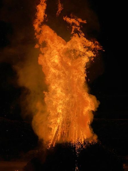 Jungwacht und Blauring verbrennen den Böögg auf der Brühlwiese. Der Holzstoss brannte schön und gleichmässig. Der Böögg explodierte nach 12 Minuten. Es wird einen ziemlich guten Sommer geben.