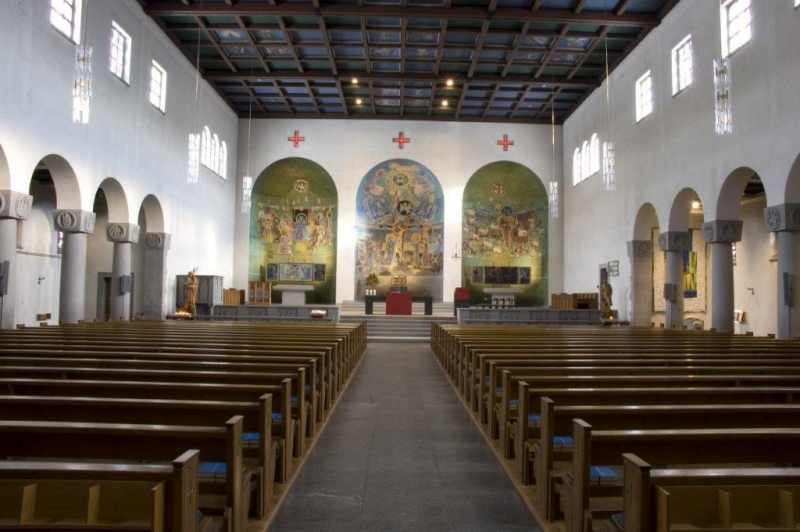 Walter Burger vertiefte das theologische Konzept und vergewisserte sich durch die Wahl der biblischen Bildfolgen der Selbstoffenbarung Gottes. Die Absiden und Altarbilder laden zur Andacht der wichtigsten Heilsereignisse ein. Die Kirchendecke erzählt in der Art der Bilderbibeln die Geschichte des Gottesvolkes vom Anfang der Welt bis zur Geburt Jesu. Zur künstlerischen Ausstattung zählen die Sandstein-Kapitelle und Reliefs von Josef Büsser, der Kreuzweg von August Wanner, das Glasfenster von Hans Stocker (Gesang der Jünglinge im Feuerofen) und die Dreifaltigkeitssymbole von Albert Schenker. Die Kirche steht unter Denkmalschutz.