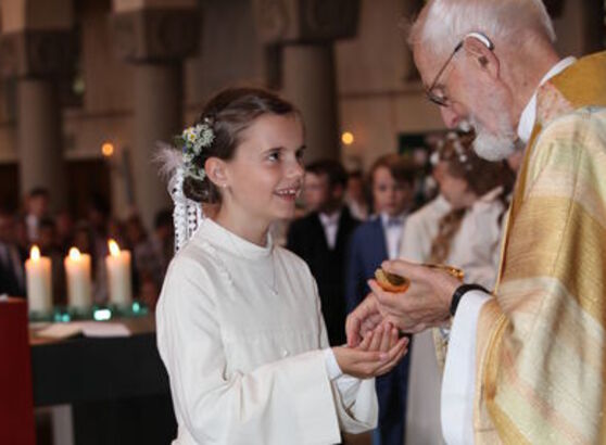 Die Kinder werden bei uns im Religionsunterricht in der 3. Klasse auf die Eucharistie vorbereitet. An einem Sonntag nach Ostern feiern wir die Erstkommunion. Infos bekommen Sie bei Urszula Pfister.