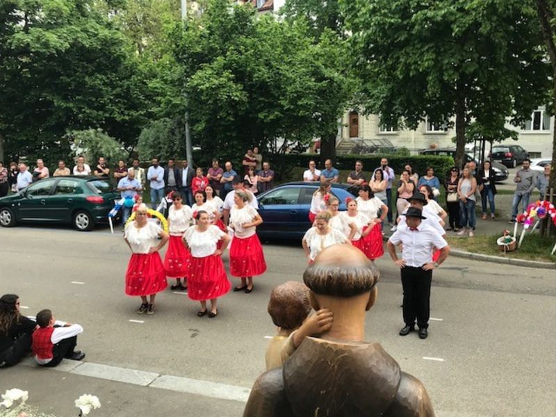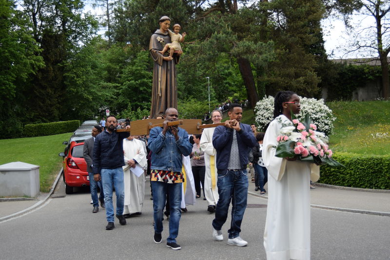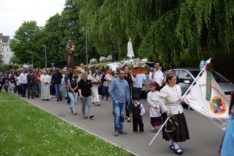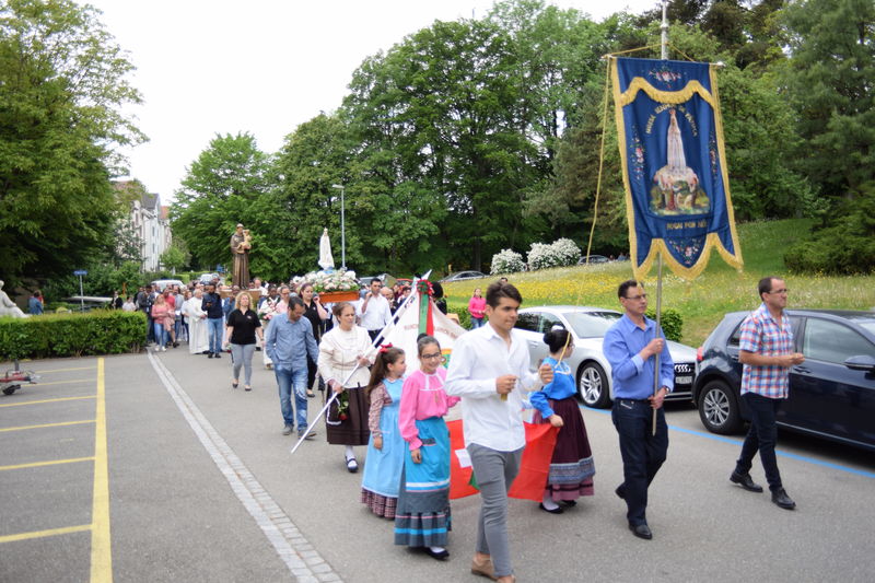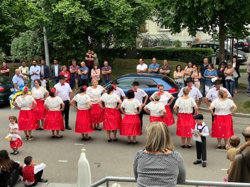 Zum 10. Male trugen Frauen die Fatima-Madonna von der Dreifaltigkeitskirche zur Kapelle Sant’Antonio. Eine grosse Schar Gläubige begleitete sie zusammen mit der Antonius-Statue und der Musikgesellschaft St. Gallen Ost. Vor der Kapelle erbat die Gruppe von ihrem Schutzpatron, Sant’Antonio, den Segen. Danach tanzten sie und eine weitere portugiesische Folkloregruppe auf der Kolumbanstrasse zur Freude der Anwohner.