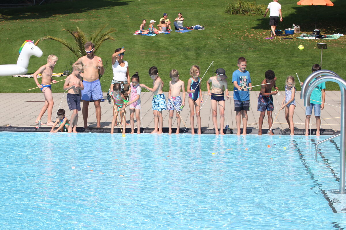 Einhörner, Wale und Flamingos traten bei der Plausch-Regatta an und die Kinder paddelten sie mit Händen und Füssen durch das Wasser. Beim anschliessenden Angelwettbewerb kamen auch die Kleinsten nicht zu kurz.