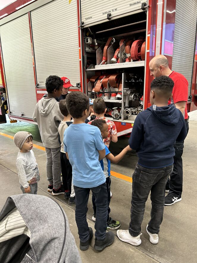 Diesmal war die Kirche Kunterbunt bei der städtischen Feuerwehr zu Besuch.