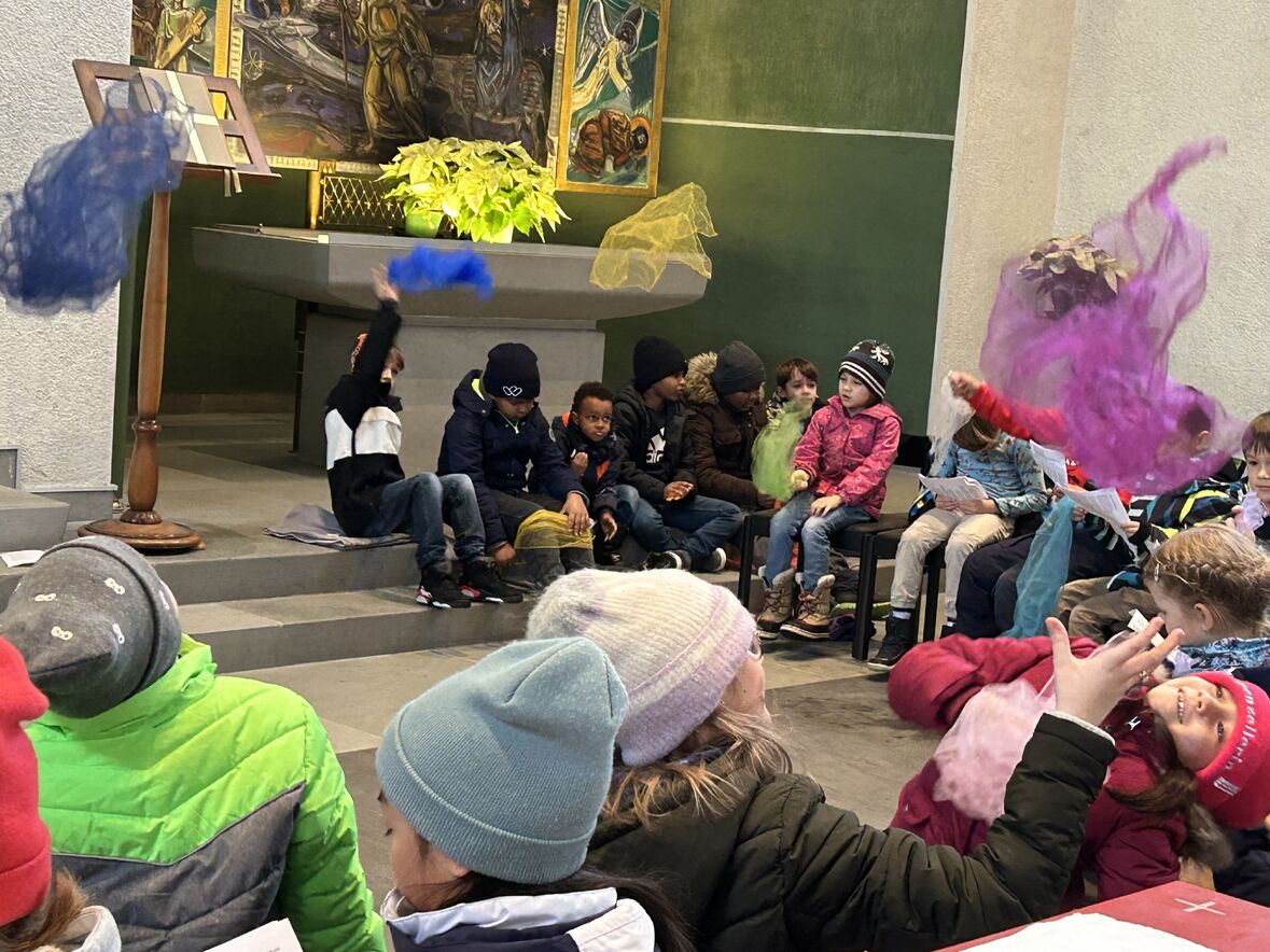 Viele interessierte Kinder engagierten sich beim Basteln, Spielen und Singen in der Kirche. Das gmeinsame Mittagessen genossen alle zusammen im Pfarreiheim