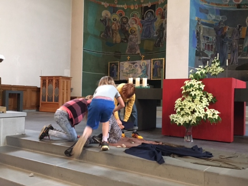 Eine grosse Kinderschar genoss dieses Jahr den Religionsnachmittag in der Pfarrei Heiligkreuz. Sie hatten Spass beim Absolvieren der diversen Posten. Im Anschluss gab es Wurst, Schlagenbrot über dem Feuer und Kuchen.